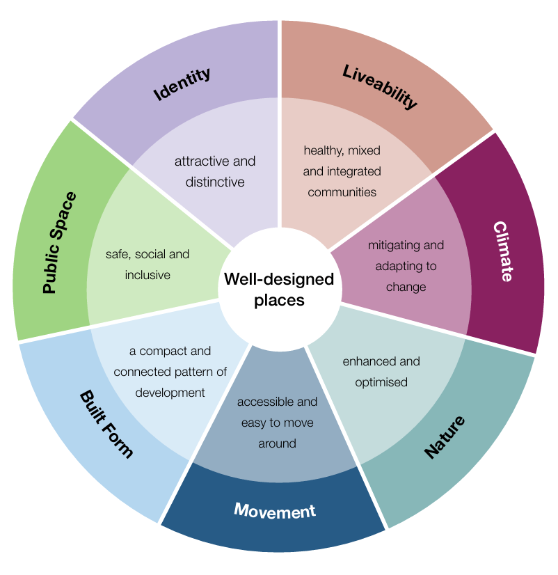 At the core of the guidance are seven principles of well-designed places as shown in the attached image.